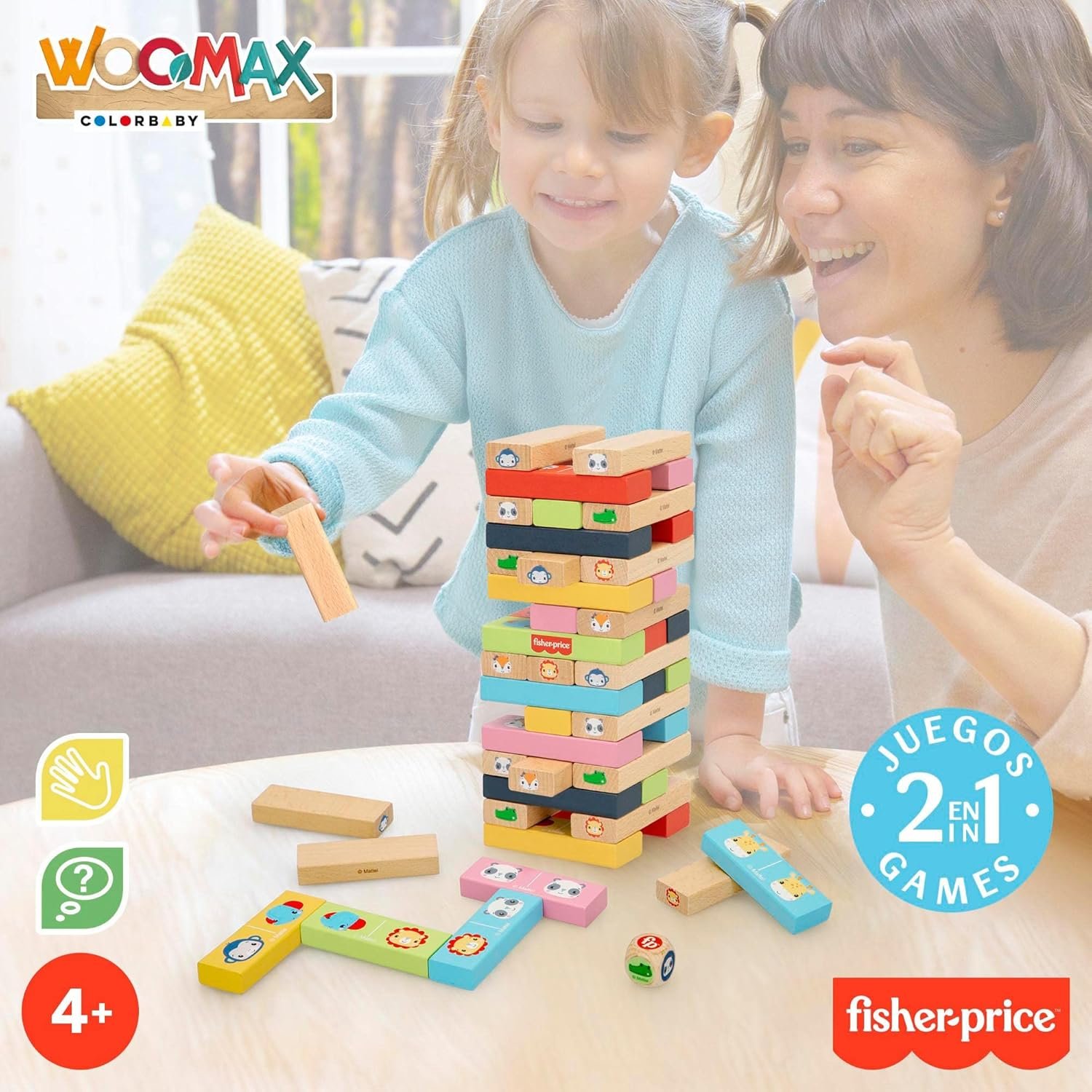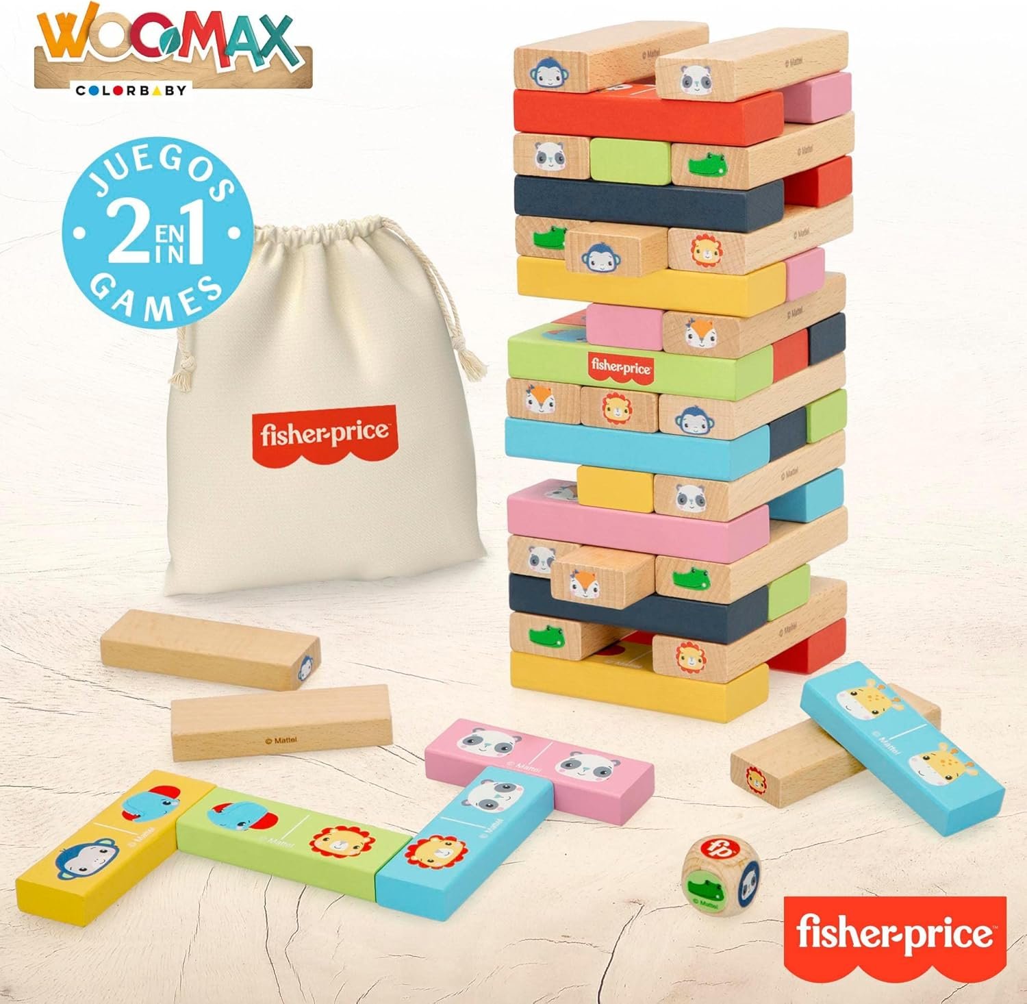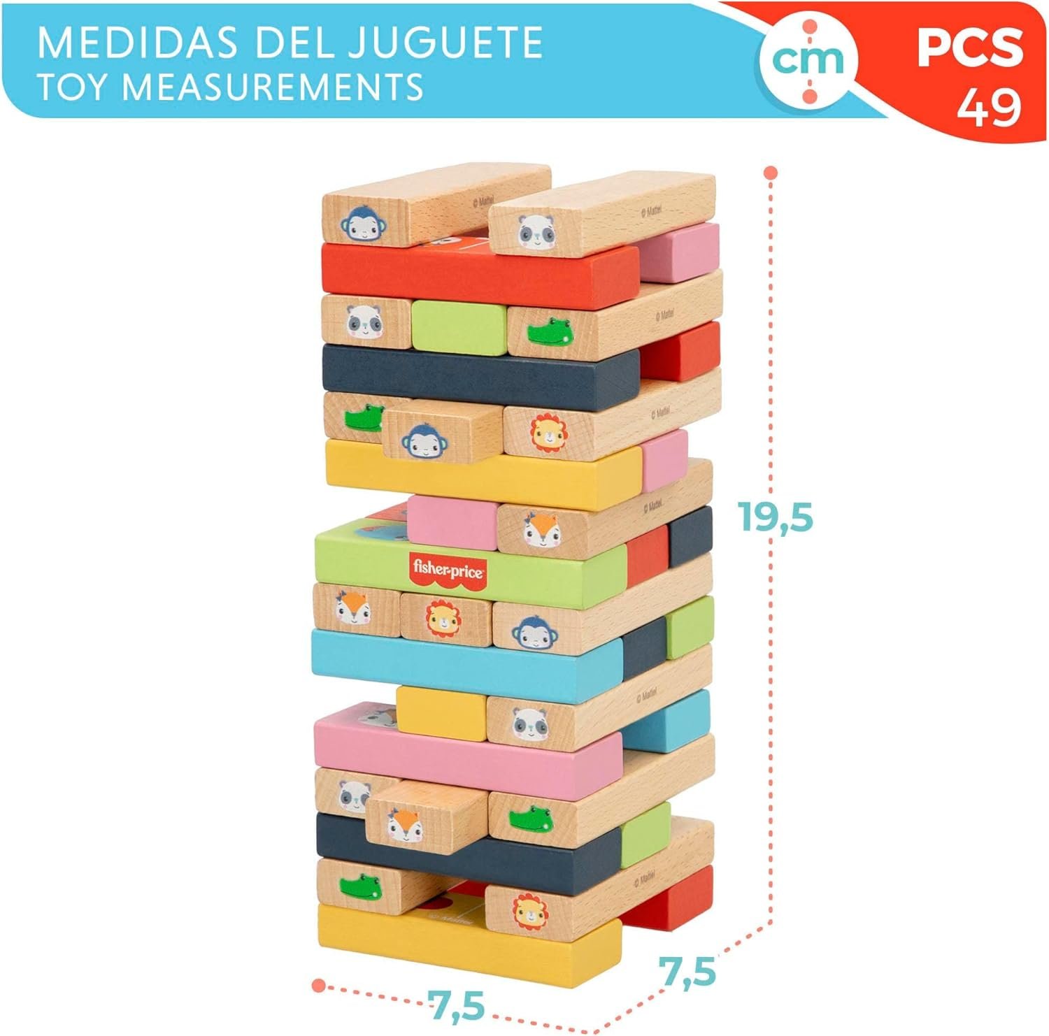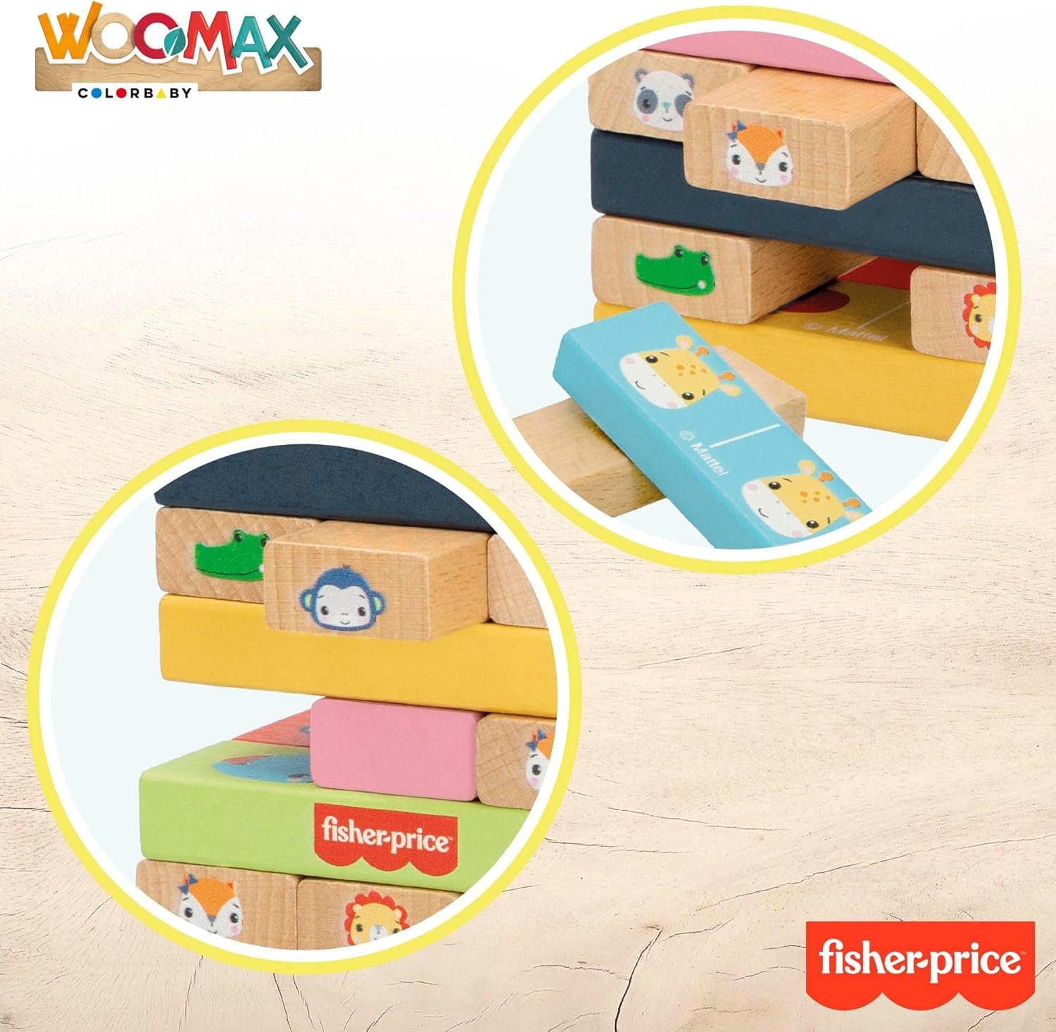 ColorBaby Fisher Price 48809 – Fisher Price-Torre de Bloques de Madera Animales +36m